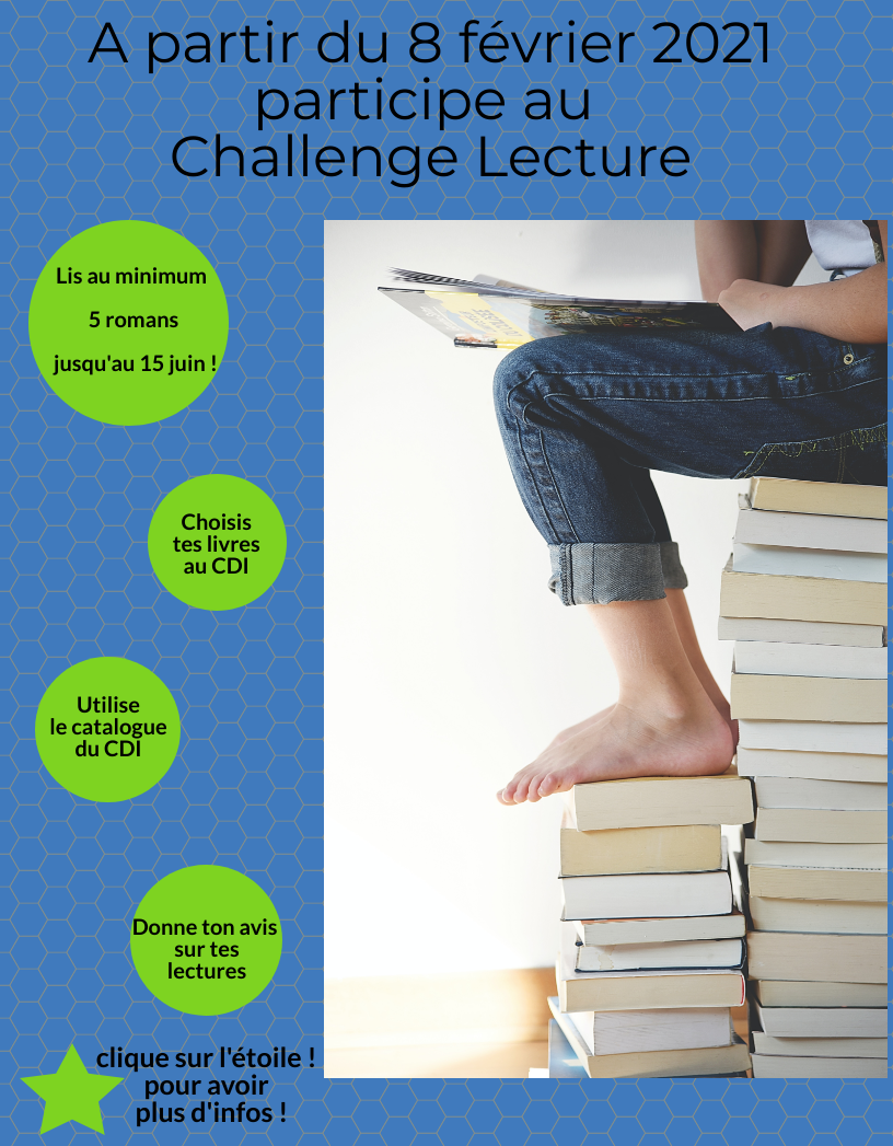 Le challenge lecture 2021 est lancé. Vous pouvez y participer sur la pause de midi ou sur vos heures d’études. Venez découvrir de nouveaux mondes en lisant.